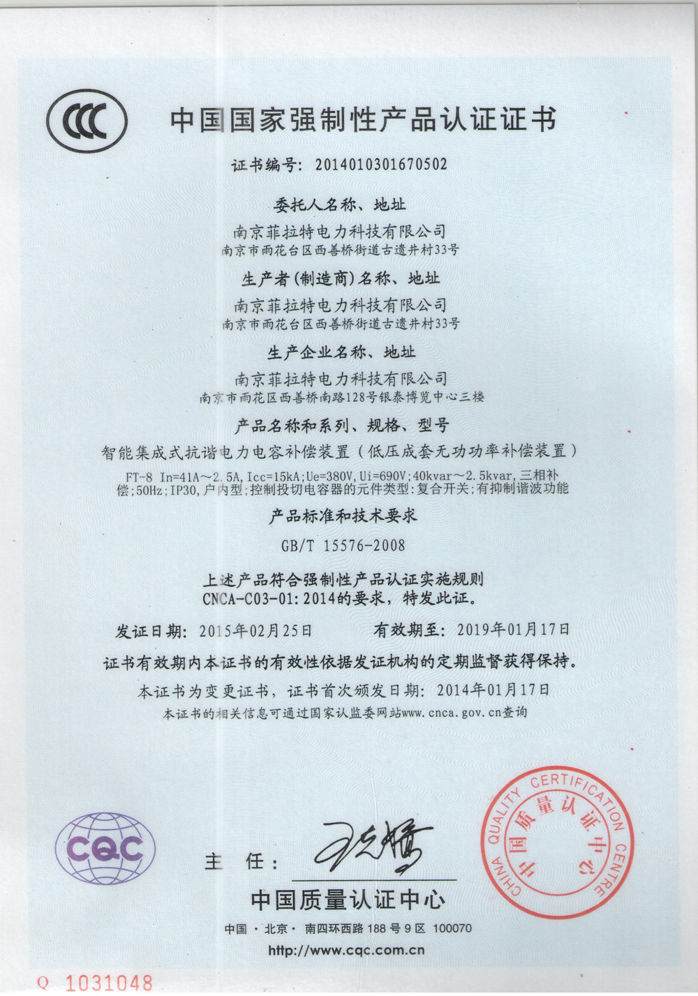 中国国家强制性产品认证证书3